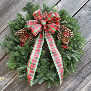 Bluestone Greenery’s 18″-20″ single faced, decorated wreath. Choose from a Tartan Plaid bow or a Red Velvet bow.